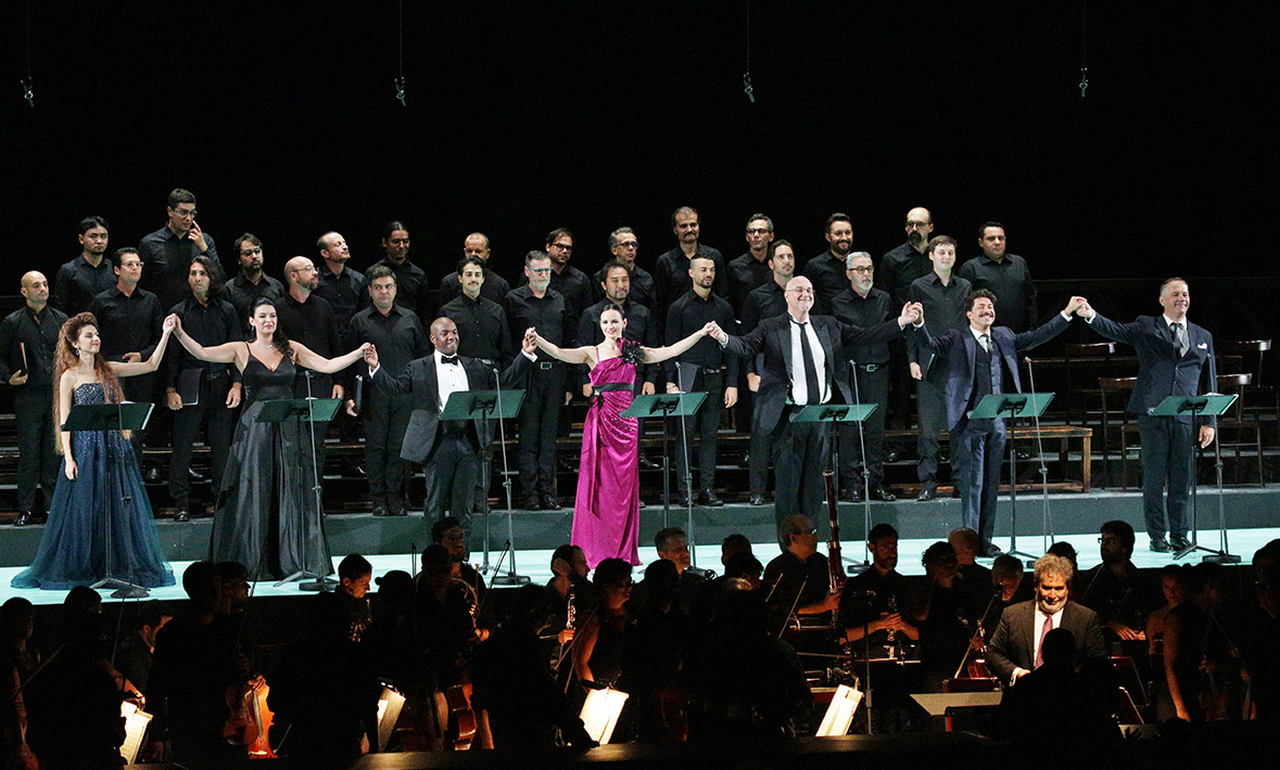 The curtain of the 40th ROF went officially down with a final celebratory concert at the Vitrifrigo Arena (August 22), which for once deserved its Gala designation. It was a real reunion of world quality Belcanto established stars as well as definitely rising ones. Indisposition of tenor Sergey Romanovsky required dropping Pirro’s aria from «Ermione» as well as his substitution by Ruzil Gatin (a young singer of extraordinary vocal presence and brightness of tone) in Chevalier Belfiore’s duet with Anna Goryachova’s Marchesa Melibea from «Il Viaggio a Reims». On the other hand, Mirco Palazzi’s withdrawal (he was substituted by the sonorous Carlo Cigni) meant no further changes to a program summarizing the Rossini comico in its first part and the Rossini serio after the interval.