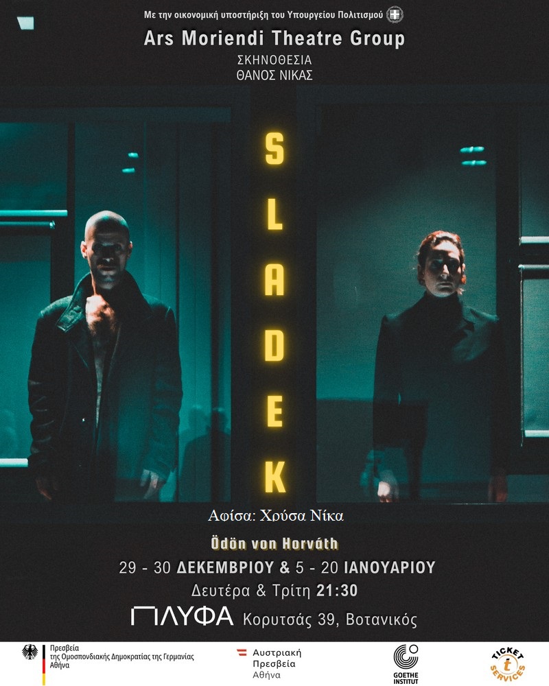 Μετά από έναν επιτυχημένο τριπλό κύκλο παραστάσεων στη Θεσσαλονίκη, η Εταιρεία Θεάτρου “Ars Moriendi” παρουσιάζει και στην Αθήνα το πολιτικό δράμα «Σλάντεκ» (Sladek) του Αυστρο-Ούγγρου θεατρικού συγγραφέα Έντεν φον Χόρβατ, για λίγες παραστάσεις.